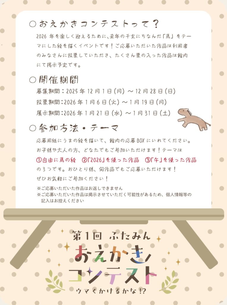 2026年を楽しく迎えるために、来年の干支にちなんだ「馬」をテーマにした絵を募集するイベントです。